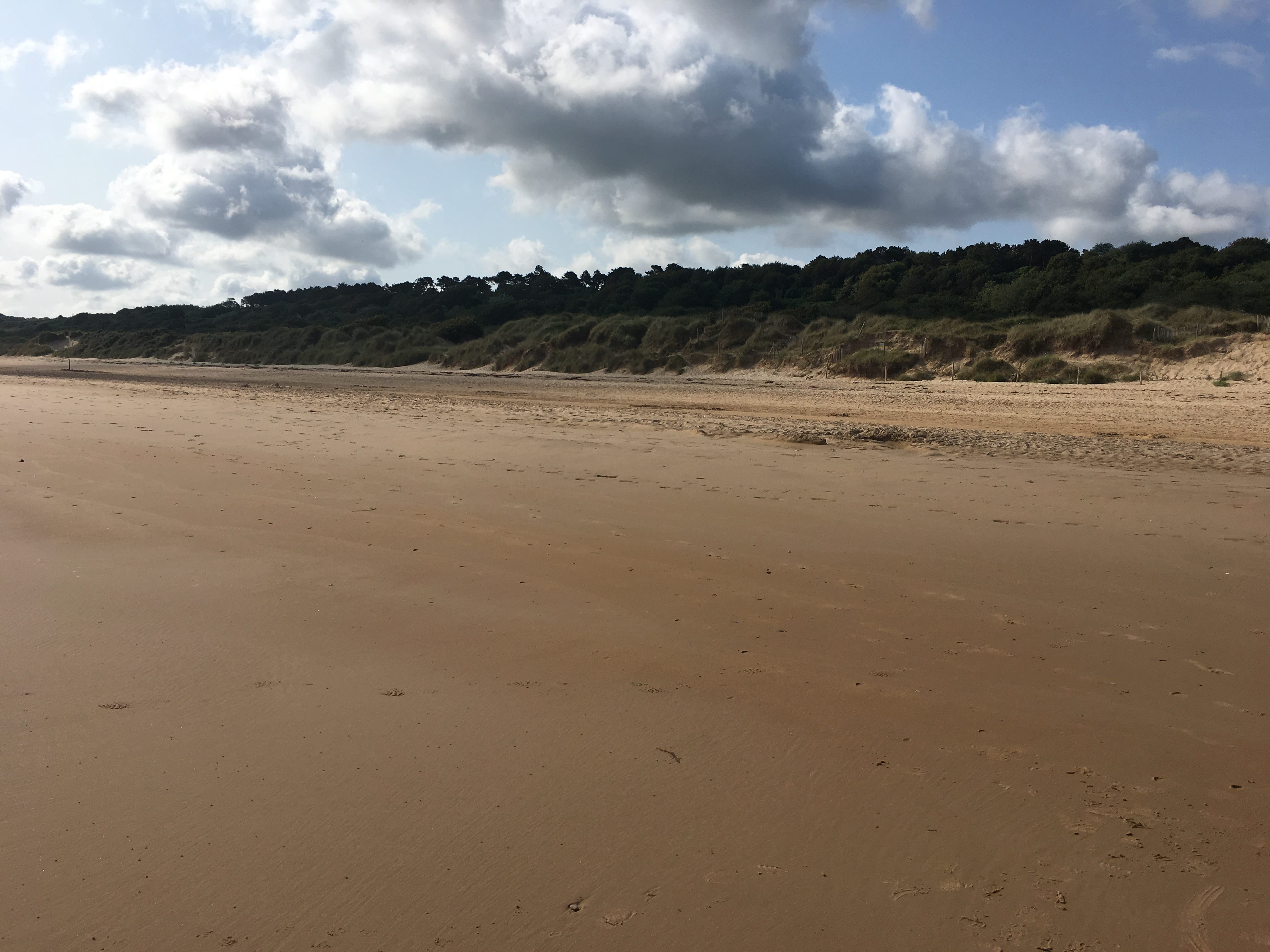 I cannot imagine what it must have been like to cross this expanse of sand now known as Omaha Beach which must have looked like miles of open space to those warriors who jumped into deep water with enormous weights strapped on their back to start wading/swimming/paddling/dodging the firepower coming at them as they jumped into the Channel.